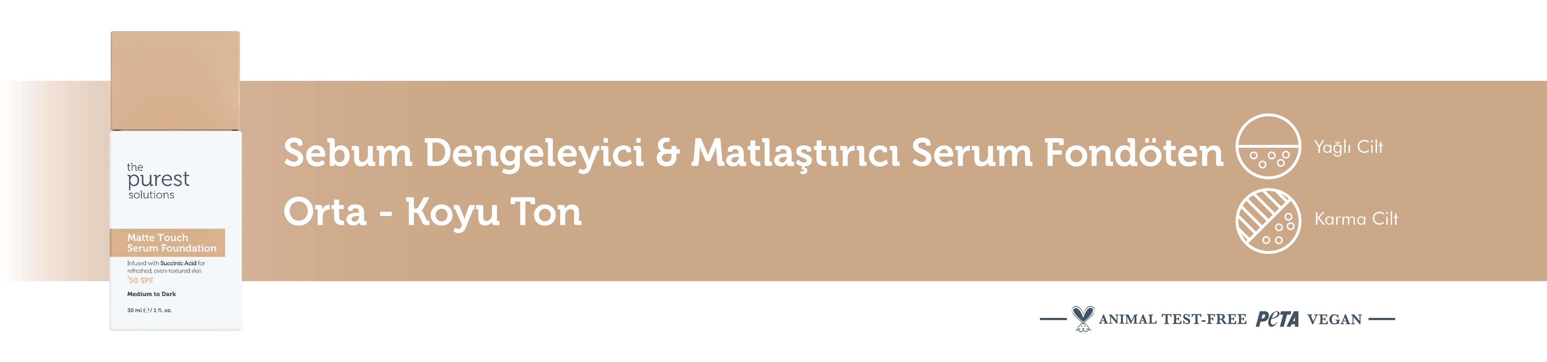 Sebum Dengeleyici & Matlaştırıcı Serum Fondöten SPF 50+,30 ml – Orta/Koyu Ton