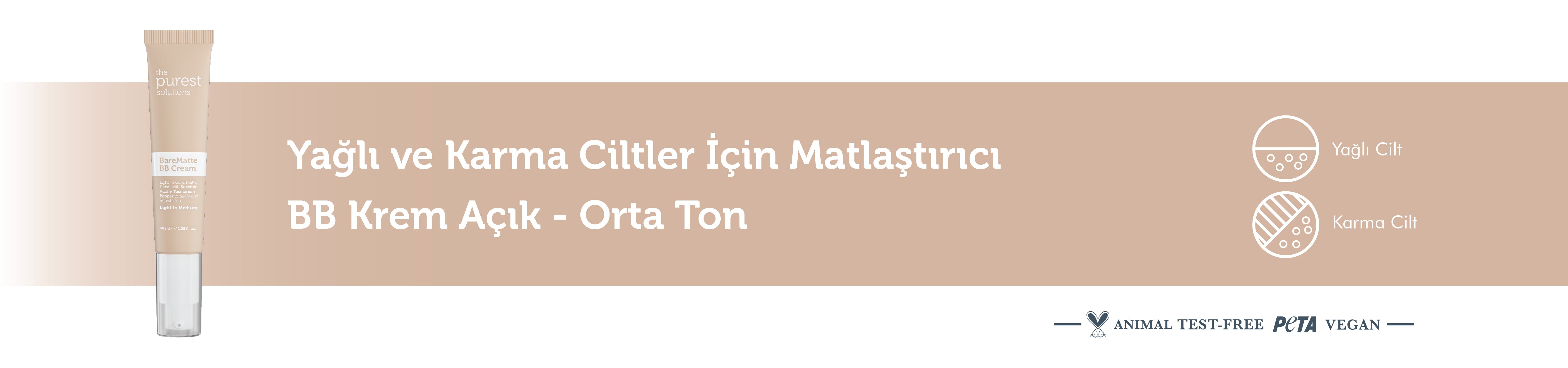 Yağlı ve Karma Ciltler İçin Matlaştırıcı BB Krem, yağlı ve karma ciltler için özel olarak formüle edilmiş hafif, yağsız bir BB kremdir. Süksinik asit ve Tazman Pepper ekstraktı ile sebum üretimini dengeler ve parlamayı kontrol eder. SPF 50+ koruması ile UV ışınlarına karşı cildi korur, mat ve pürüzsüz bir görünüm sunar.